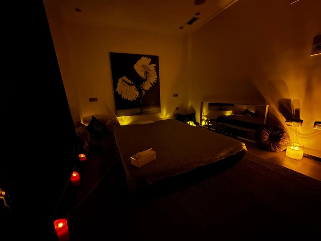 Disfrutarás de un ambiente altamente relajante, con iluminación de velas, música especial y aromas de esencias, todo esto estimulará aún más todos tus sentidos.